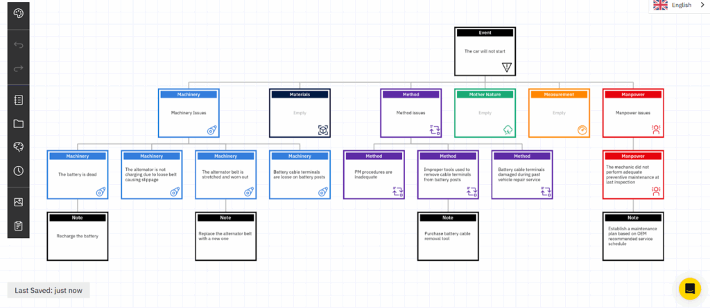 - One-click diagram creation: Automatically generate a clean, organized fishbone framework from your initial problem statement without manual drawing tools